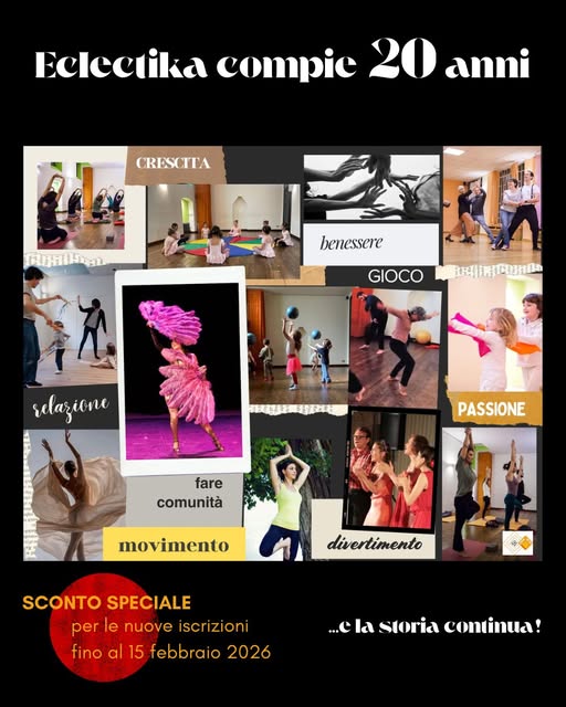 A Milano non solo Olimpiadi...questa settimana Eclectika compie 20 anni! Per celebrare questo traguardo, siamo felici di riservare uno sconto speciale per le nuove iscrizioni fino al 15 febbraio! Buon compleanno a tutti noi insieme a voi!
